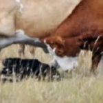 På Expressens hemsida kan man titta på dramatiskt ett bildspel där en svartbjörn slåss med en flock kor. Bilderna är tagna i USA. Titta på bildspelet