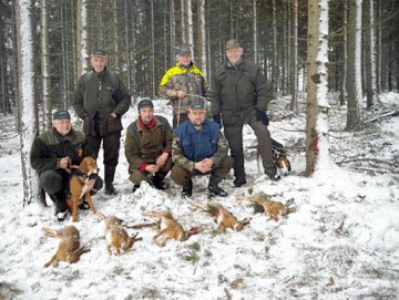 Till första grillningen vid tiotiden hade redan tre harar skjutits, och när jaktdagen avslutades vid 13.30- tiden ytterligare två. Summa alltså fem harar på en jaktförmiddag!