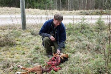 Tio minuter efter att drevet tystnat hittade han sin jaktkamrat. Dödad och halvt uppäten av varg.
