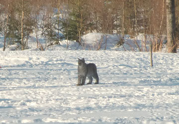 Det här lodjuret fotograferades från kökstrappen av Jan Kinell i Sandhem, Jönköpings län, på morgonen den 13 mars.