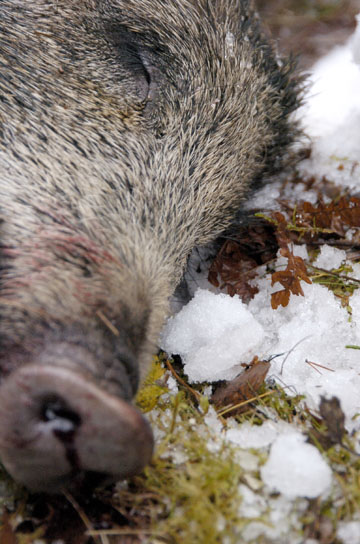 Med snötäckt mark i hela Sydsverige under januari gynnades möjligheterna att skjuta vildsvin. Inte minst i Skåne fick viltuppköparna in så många vildsvin att det ledde till sänkta priser för jägarna.