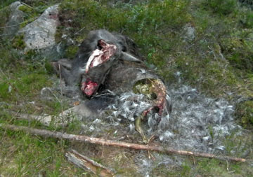 En slaktplats efter varg har hittats i närheten av Vintjärn, Falu kommun. Det är en älgko som gått en väldig plågsam död till mötes.