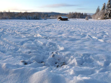 En kort bakspårning visade att vargen på några få timmar dödat ett rådjurskid och sedan ätit upp allting på djuret, sånär som små rester av ett bakben. Vargen hade i långa språng sprungit i kapp rådjuret, dödat djuret och ätit upp det på en större åker.