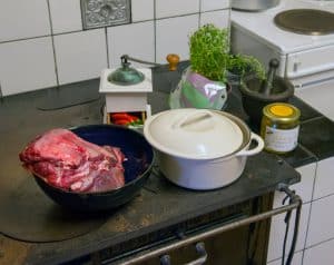 Så jag måste gå till butiken för att handla kött som producerats någon annanstans, långt borta. Jag äter mycket grönsaker och annat, men någon gång vill man ha kött.
