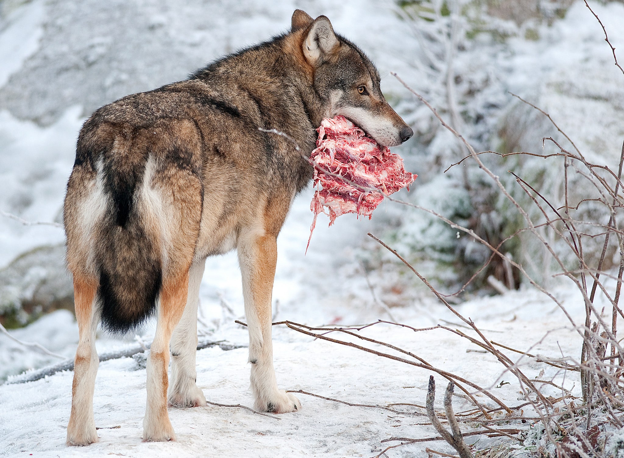 Till våren kommer björnarna och tar de älgkalvar de hittar, och utöver det en och annan vuxen älg. Vargarna får nya valpar som ska födas upp.