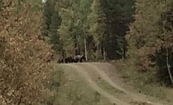 Tim såg först två björnar som gick bort från honom längs skogsvägen. Därefter kom det ut tre till som anslöt till de två andra björnarna.