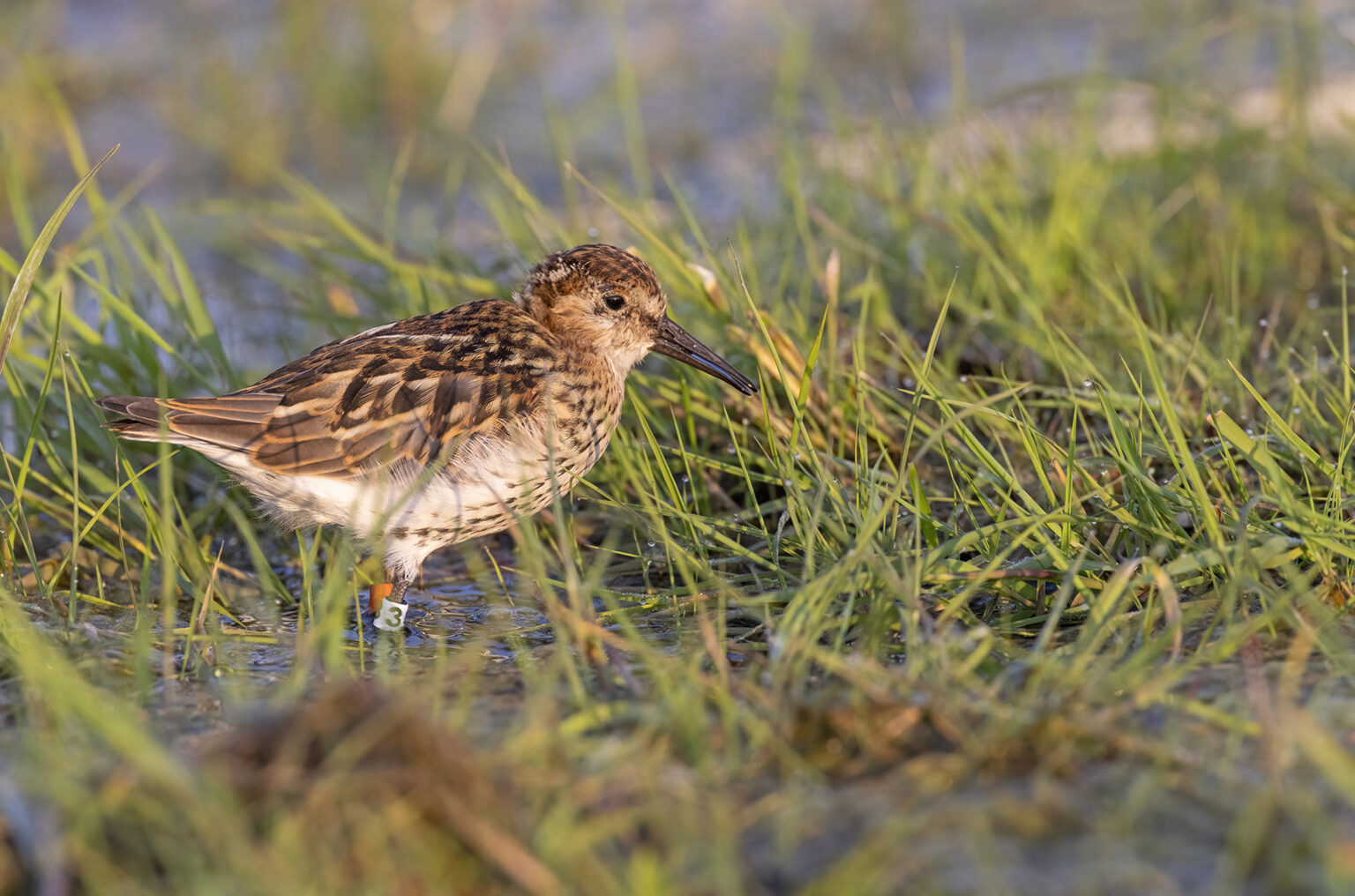 En ung kärrsnäppa har precis släppts ur voljären på södra Öland. Måhända var det den som återkom för att häcka i år. Foto: Mattias Ullman/Projekt sydlig kärrsnäppa