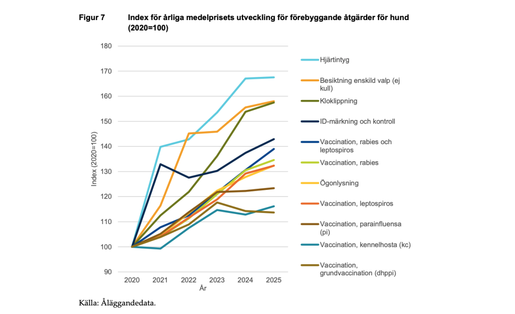 I sin analys av prisutvecklingen konstaterar Konkurrensverket att icke-profylaktisk vård av hund och katt mellan 2020 och 2025 med råge överstiger den allmänna prisutvecklingen. Enligt analysen som genomförts har också prisutvecklingen varit störst hos veterinärkliniker som ingår i de två stora koncernerna Evidensia och Anicura.