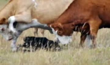 På Expressens hemsida kan man titta på dramatiskt ett bildspel där en svartbjörn slåss med en flock kor. Bilderna är tagna i USA.
